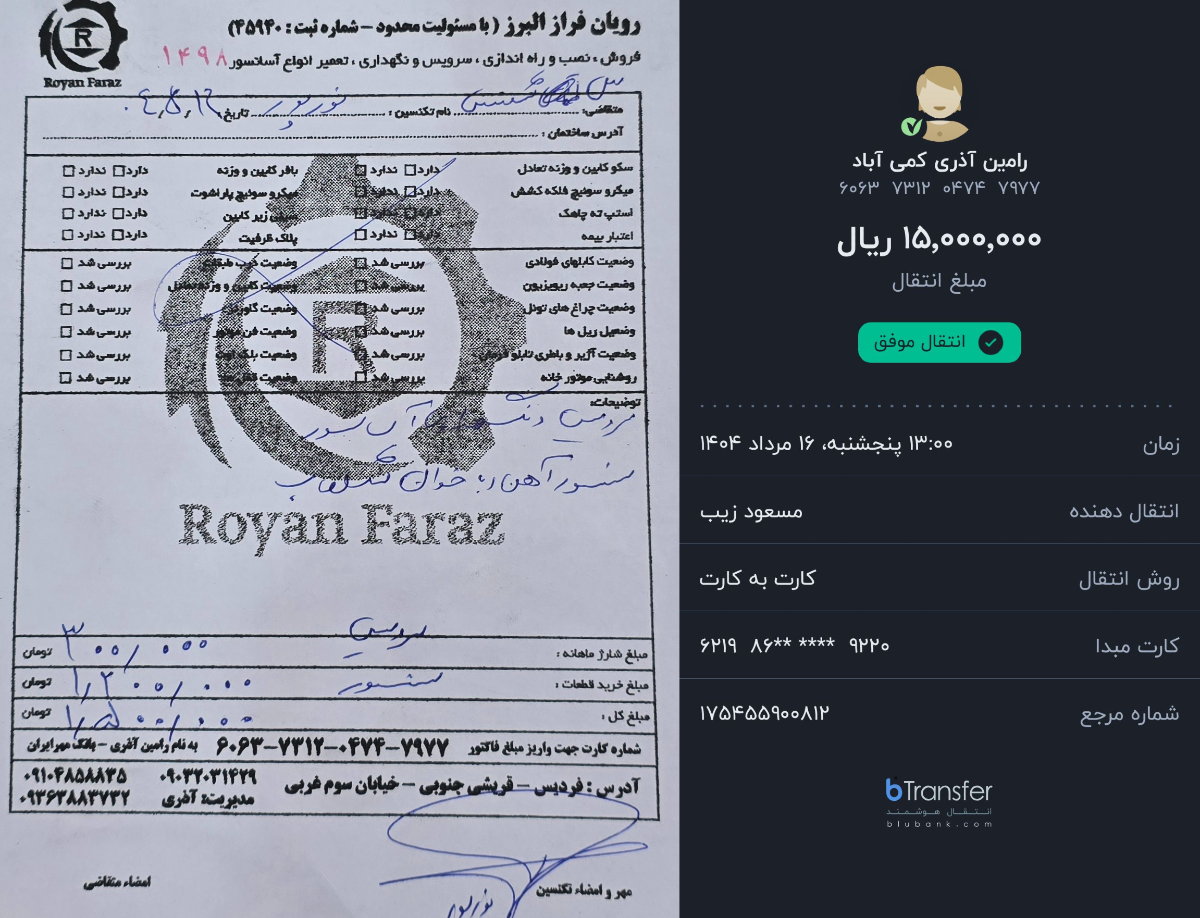 بابت تعویض سنسور معیوب طبقات آسانسور